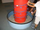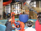 いろいろな種類の方法で、水をくみ上げ、真ん中の容器にいれます。