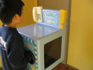 女の子の大好きなおままごとキッチンやスーパーのレジコーナー。本物のレジでレシートもでます。