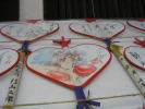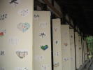 うちわが2階からまかれるはずだった鼓楼のまわりには、著名人によって描かれたうちわが飾られていました。