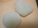 講堂で参拝して、出口へ向かうと、餅まき用のお餅が配られていました。ぽんきちと一個ずつもらうと、私で最後でした。