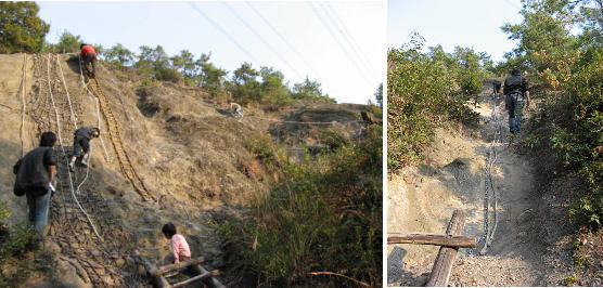 くさりのぼり・ロッククライミング・だけのぼり・行者歩きなどこの崖にポイントがいっぱいあります。