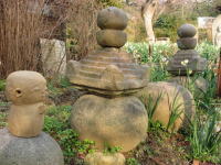 石仏のすぐ前は地植え、少し離れてプランターにも植えられています。