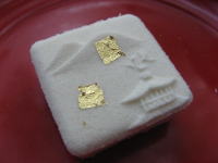 お菓子には金閣が型押しされていて、金箔がのっかっていました。 |