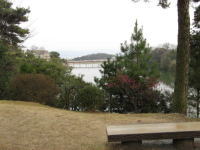 建物の裏手には、池の横に眺めのいい場所にベンチが置かれていて、休憩できるようになっていました。