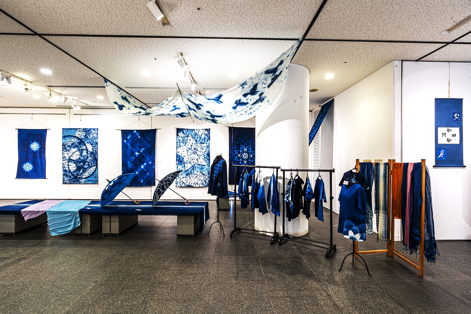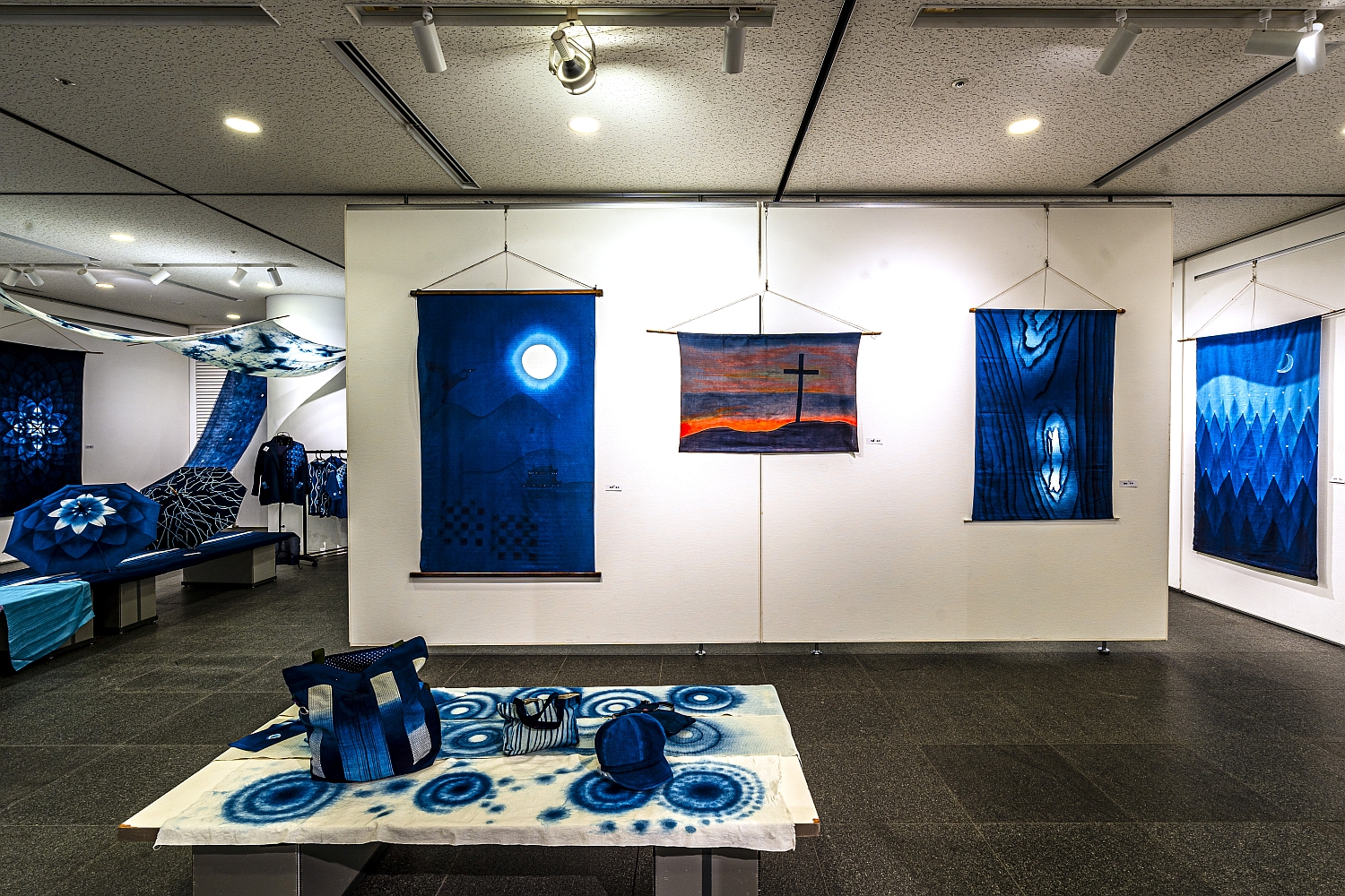 2025年度本藍染展示会は『藍景』と題し、新作や過去作からの選りすぐりで鮮やかな藍の景色を表現いたしました。