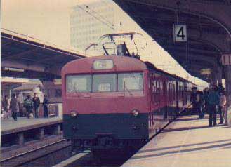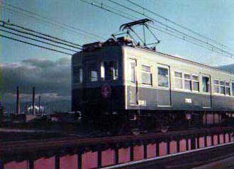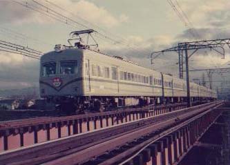 電車が走ってました。今ではラピートみたいにカッコイイのが走ってます。