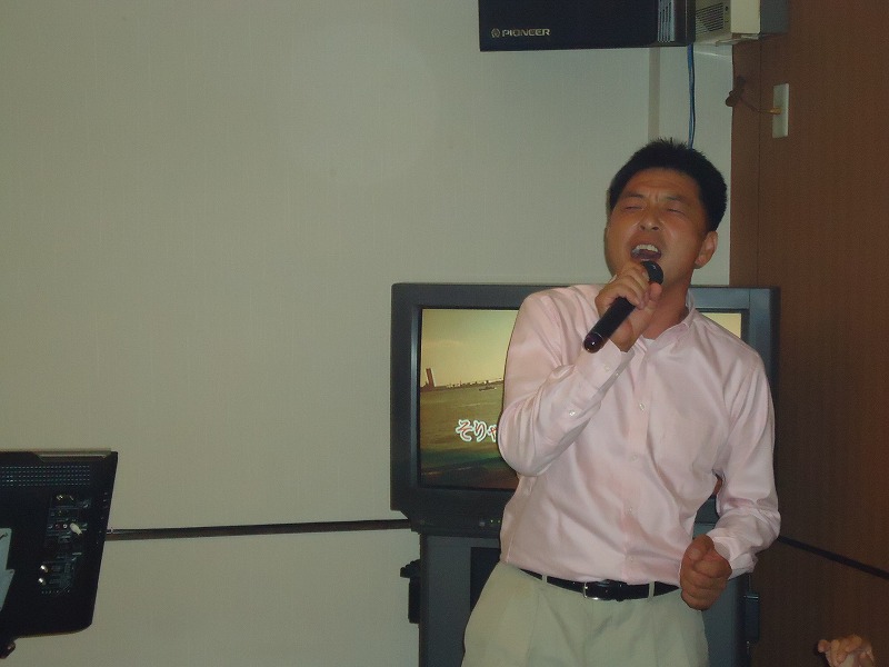 | Tさん恒例のいなかっぺ大将熱唱! | わたくしも調子に乗り「雨上がりの夜空に」熱唱? |
