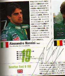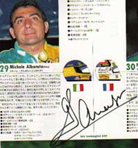 F―1サイン集4 セナ、マンセル、プロストなんかは何十人がいっぺんに取り囲むので大変だったと思います。 特にレースの後優勝ドライバーや入賞ドライバーのサインをもらうのは一苦労でした。 ベルガ−なんかはほとんど、無視状態で通りすぎます。 このころは、シューマッハ、ハッキネンなんかは比較的簡単にもらえました。