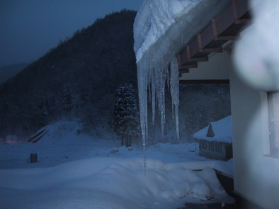 午前5時30分。長〜いつららが見事に垂れ下がっていました。