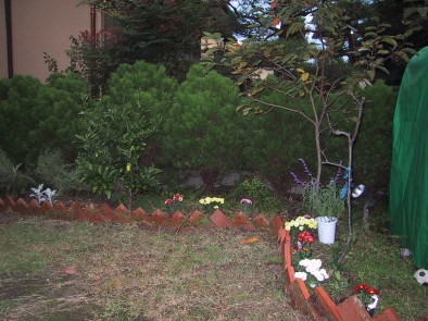 南東部分の自転車小屋の前に、ゴールドクレストを植えてみました。本当は梅雨時に植え替えた方がいいらしいのですが、なんとか根づいてくれるといいんだけど。一気にイングリッシュガーデンに近づいたような気がします。(^o^) 周りには、レンガに沿って、ブルーセージ、ハローエンジェル、ラベンダー、スプレー菊、ポンポン菊、白妙菊、ケイトウ、ナデシコ等を植えたら華やかになりました。どれも68円〜200円までのお買い得商品でした。 |