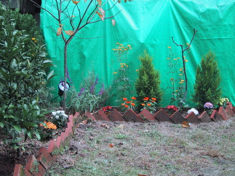 今朝は、南東部分のコノテヒバが植えてある部分を中心にレンガブロックで花壇の枠取りをしました。そこには、柿、みかん、梨、びわの木が植えてあります。その周りにハーブ系の植物を植えようかなと思います。また、南西のアメリカハナミズキの周りには、5月になったら、手軽な野菜を植える予定です。 |