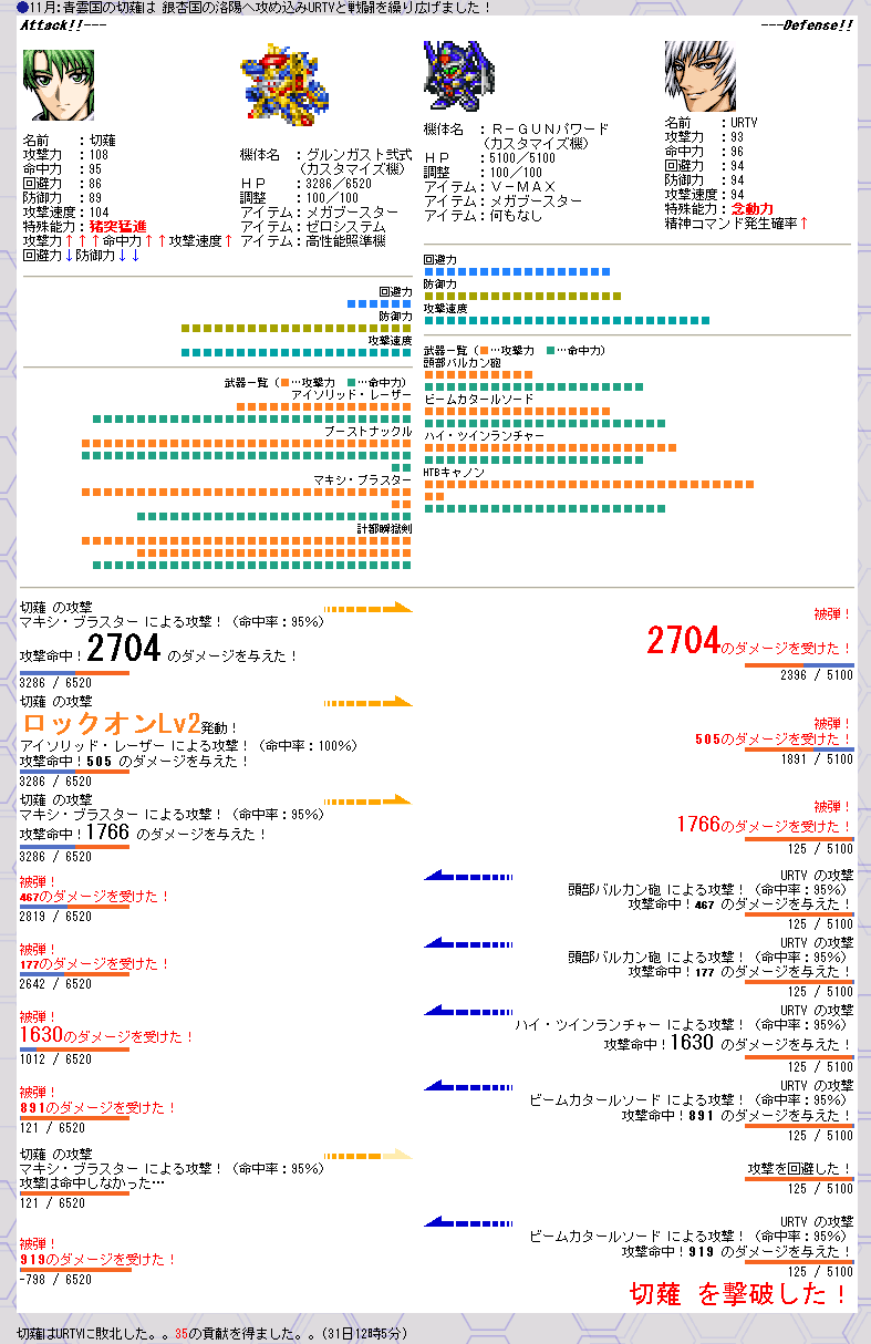| 攻撃速度 | 攻撃回数を増やすことが出来ます。 また、攻撃速度が高いと敵の拠点に攻めて敵を撃破した場合、連続で敵と戦闘することができるようになります。 攻撃回数が増えると敵が攻撃を行うまえに倒すことができるかもしれません。 攻撃回数が増えると必然的に1回の戦闘での精神コマンド発生確率も上がってきます。 |