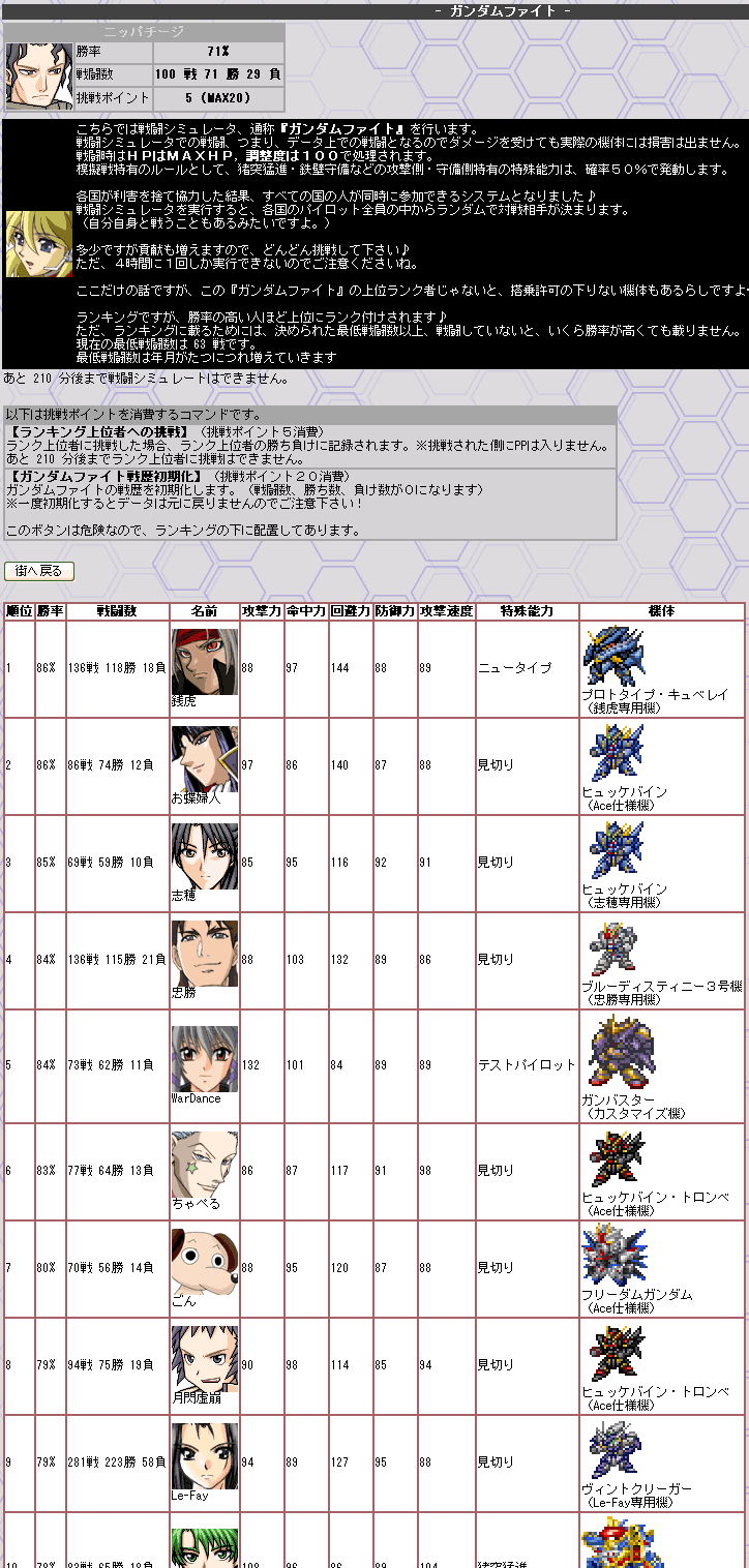 | 熟練兵 | 10 | 今までに戦争を経験してきた熟練兵士。 登録時にパイロットポイント・階級値プラス パイロットポイント↑↑階級値↑↑ |