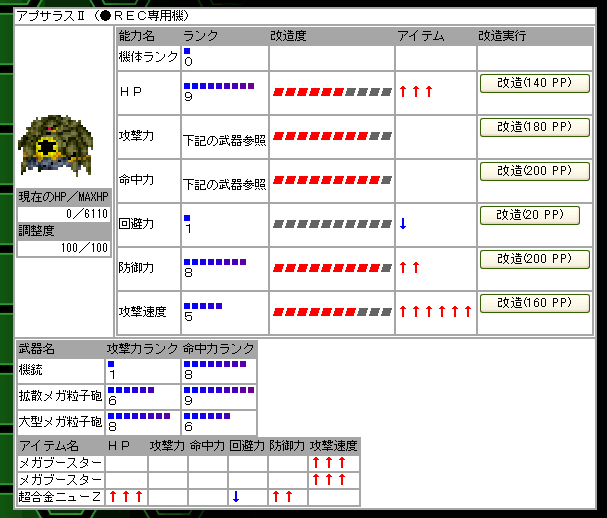 →機体の調整度を一気に100に上げます。PP100消費します。