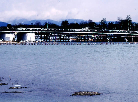 この日は朝から雪模様。普段は観光客でにぎわう嵐山は真冬ということもあり人影まばら。