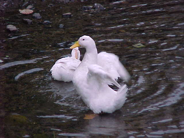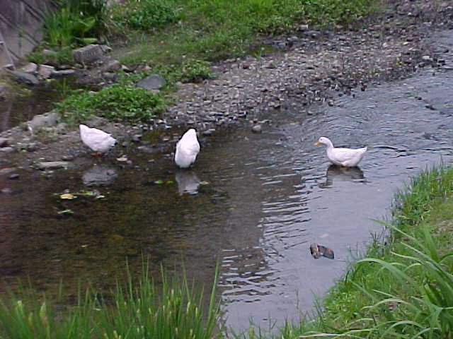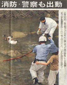 佐保川には「先住者」のカモやサギがいる。アヒル たちはカモにつつかれ、体のあちこちの羽が抜けてい た。主婦や近所の会社員が奈良県や余良市に相談し たが、らちがあかず、翌29日消防署佐保出張所へ連絡した。 消防隊員8人がその日のうちに来て3羽のうち2羽を保護し、約 600m離れた鴻ノ池へ放した。この池には20羽以上 のアヒルがおり、安全。残る一羽は逃げてどこかへ行ってしまった。