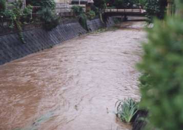 ところが梅雨になり、大雨が降り、水かさが増し、川原の岸もなくなってしまったのです。