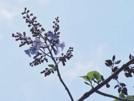 | 用材用に栽培される落葉高木。高さ10mほどになる。葉はハート型。 初夏枝頂に大型で円錐形の花穂をなし紫色の花を開く。家具や下駄のほか日本古来の楽器である琴も桐で作られる。 梧桐はアオギリのことですが、琴の材なので桐とみてもよいでしょう。 |