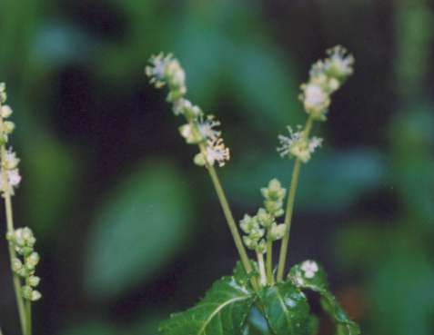 山野の陰地に自生する多年草。春から初夏にかけて、薄緑の小さい花が穂のように咲く。