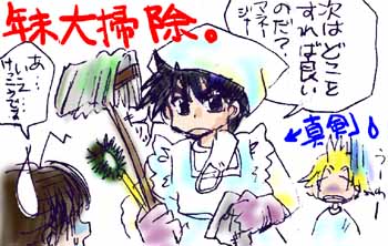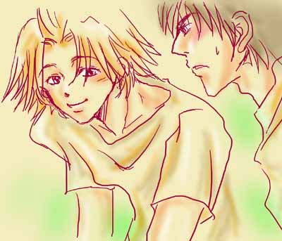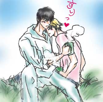 紅白は白組圧勝でしたね。赤組トリの天●さんが気の毒ですが、今回はSM●Pの「世界で一つだけの花」がトリで歌われる時点で白組の勝利は決まっていた気がします・・・いやもう・・・今年はこの曲でしょう・・・つーか司会の締めのセリフからしてその曲から取ってるし・・・ねぇ? で、今日このイラスト描く時に実は先に歌ってる表情は描き終ってたんですが服装は森山●太郎の服にしようと決めてたんです。えぇなんせ、『桜』ならぬ『さくら』を歌わはるわけですから。 で、どんな白い服着てくるのかと思ったら・・・いつもの服かい!!! ピンクのインナーに薄いグレーのトレーナー。 いえ、貴方らしいです。えぇ。予想通りで笑えました。いっそ横に草●君を添えたかったです。(笑) 桜庭君はレコ大辞退なんて根性はないので、ミラクルさんに言われるがままにレコ大出て、新人賞もらって、必死でN●Kホール行って着替えて、白くてスパンコールとか真珠もどきがいっぱいついた服を着せられて歌ったと思われます。もしかしたら真っ白のアメフトユニフォーム(王城もどき・・・でもスパンコール)を着せられたかもしれません。もちろん輪唱もさせられたに違いありません。 音痴も輪唱で隠れればばれないばれない♪ なによりSM●Pが出ていれば、超のつく音痴な先輩が!!!・・・いえ、大好きです●居さん。あなたの歌声は勇気が出ます。笑いもでます。←オイ きっと桜庭君も紅白を見てる王城メンバーからは大笑いされ、年明けの練習ではからかわれまくるのでしょう。クラスメイトからも遊ばれるんでしょうな〜。 頑張れっ!桜庭君!!!音痴の星になる日まで!!! (追伸←ついしんって・・・) 進・・・意外とに五木●ろしのファンだったりしそうです。 桜庭「すみません・・・友達が大ファンで・・・サインいただけますか?」 なんて頑張ったかもしれません。 こういう時、大抵友達じゃなくっておまえが欲しいんだろ?と周りから思われるのは・・・なんでだろう?何でだろう〜ななななんでだろう〜♪ ・・・いろいろ頑張れ桜庭君。