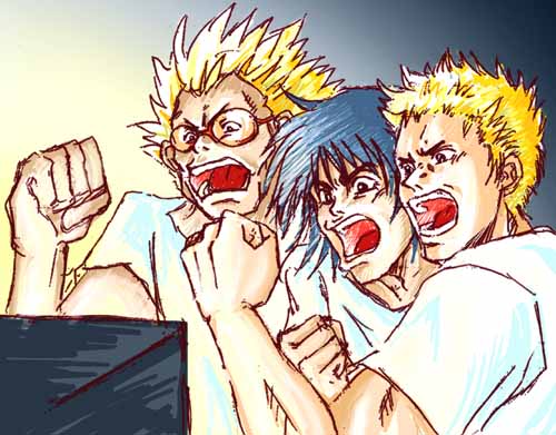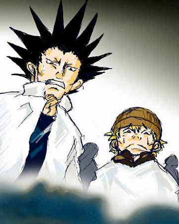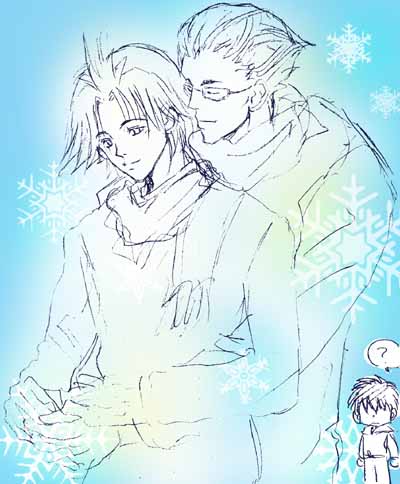 <日記> うわぁぁぁ・・・桜庭がっ!っていうか、高見さんの桜庭を見守る目が!進への高見さんの心ツッコミがっ!なんだかもう、どんどん高見さんがメインキャラへとのし上がっていくわ・・・もう地味だなんて言わせないわ!先生たちも、きっと高見さんのことお気に入りでしょv というわけで、なんだか嬉しくて嬉しくて、浮かれついでにお蔵入りしてたイラストを貼ってみたり。冬ソナ最終回の最後の最後のとこを寝て見逃して、悔し紛れに描きました。あんなに笑えるコント・・・じゃなく、ドラマのラストを見逃すとは!No〜〜〜ッ!!! でも、王城トライアングルラバーズは見逃しませんよ。えぇ!見逃しませんとも! ところで、進。桜庭あんだけ頑張ったんやし、ちょっとは筋肉ついたと思うので、変わったとちょっとでいいから思ってあげてね? え?桜庭は桜庭だから、どう変わろうと特別なのはかわらないって?あぁぁ!なるほどっ!もう、心でがっちり繋がってんねんな。そうか、そうか。 (頭のかわいそうな人がここにいますよ〜・・・って!私かっ!)