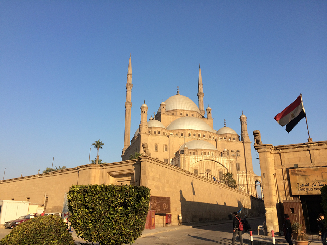 シタデルという城塞の中にあるイスラムのモスク。カイロのイスラムの建築群は600余りあり、1300年の歴史で、世界遺産に登録されています。 ハメドアリモスクはドームと2本のミナレットがありイスタンブールのモスクに似ています。内部は大きなシャンデリアとランプで厳かな雰囲気です。