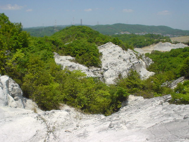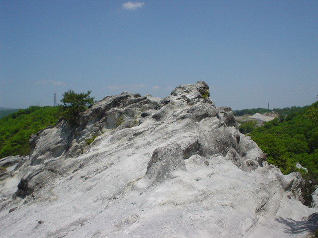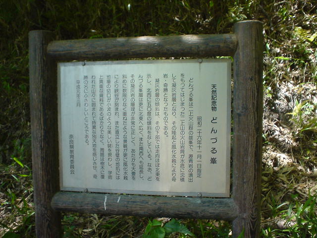 二上山(にじょうさん)から西北に位置する標高150mの奈良県指定の天然記念物で、地層のおもしろみをみせる風光明媚(ふうこうめいび)な名勝(めいしょう)、奇勝(きしょう)である。http://www.kiis.or.jp/kansaida/kashiba/kashiba02.html |