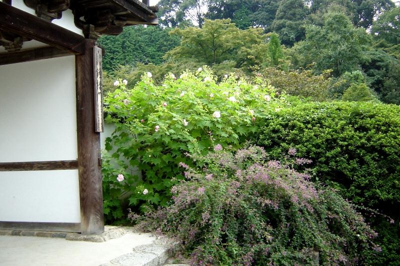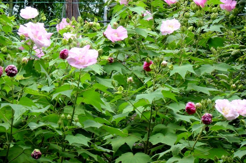 長岳寺の酔芙蓉 関西花の寺第19番霊場 天理市柳本町 早朝純白に咲いた花が午後には薄赤く発色し、夕刻には真っ赤になります。1日花で明日には別の蕾が咲きます。