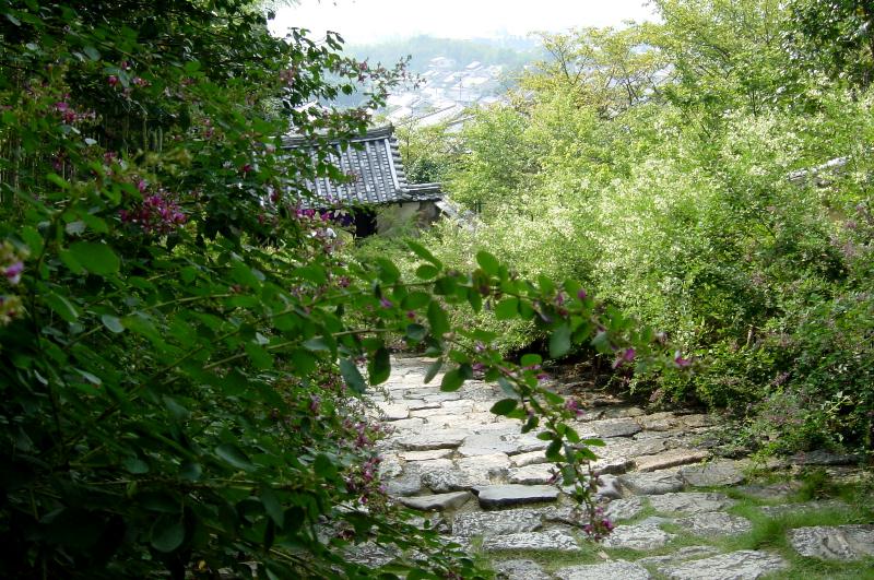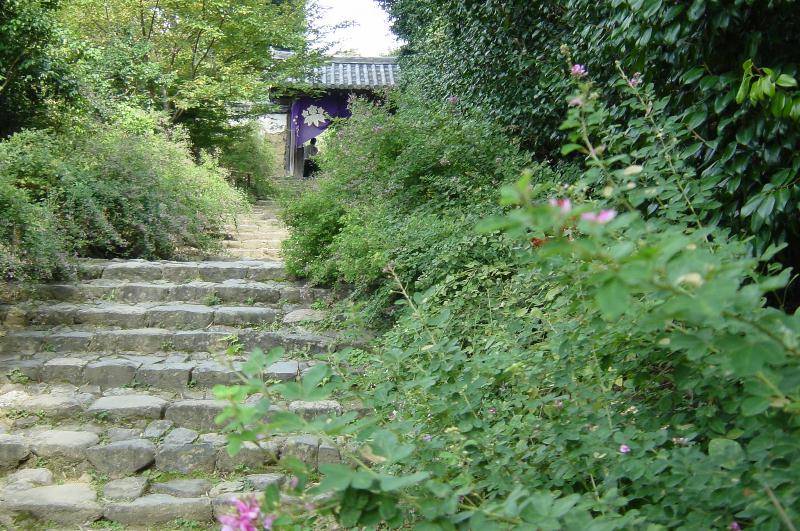 高円山白毫寺(びゃくごうじ)の萩 関西花の寺第18番霊場 奈良市白毫寺町392 天智天皇の皇子である志貴親王の山荘跡を寺にしたと伝えられる古刹。ハギの花で埋まりそうな、古びた石段両側を埋め尽くハギの花がすばらしい。「わび」「さび」を味わうなら平日に限りますね。春の「五色椿(天然記念物:一本の椿に赤、白、ピンク、各々の斑入り等五色の花が咲く)も有名です。