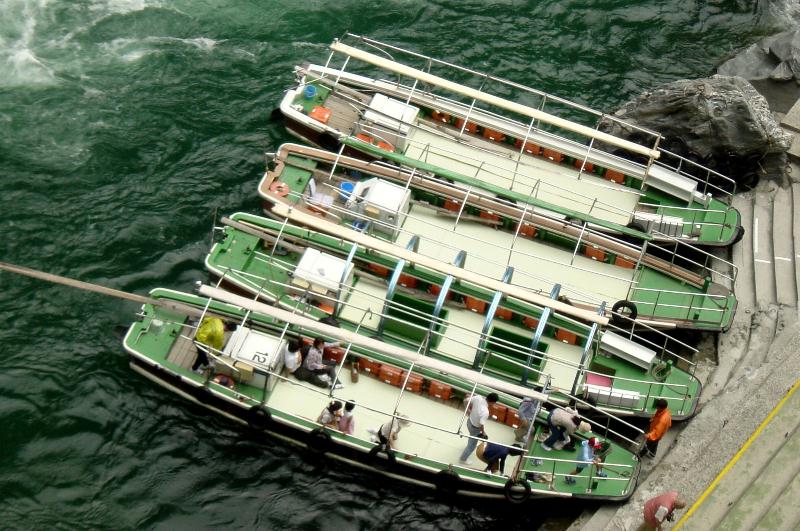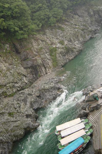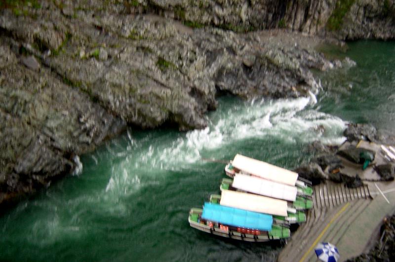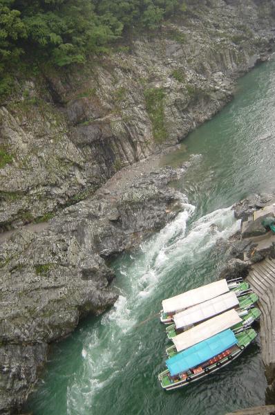 急流の中船下りがあり、水上から奇岩、景色を堪能できます。 大歩危は大またで歩くと危ない、小歩危は小またで歩くと危ないとか・・・