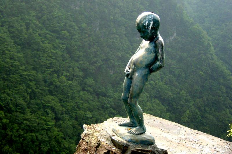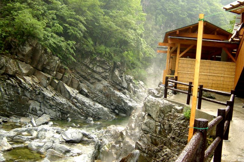 旧祖谷街道の中にあり、もっとも渓谷の深いところにあります。 この地の1軒宿でケーブルで河原まで下り、露天風呂が楽しめます。かわいい小便小僧の像もここにあります。