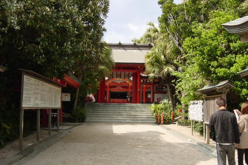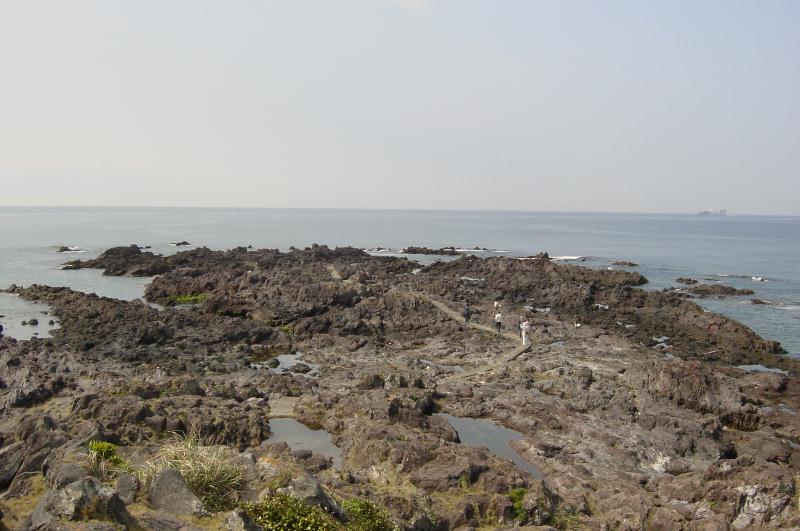 【長崎鼻】 薩摩半島最南端の岬。春霞で見えませんでしたが、岬からは大隈半島の山々、佐多岬、海を隔てて竹島や屋久島が見えるということです。有名な浦島太郎の話の発祥の地で、乙姫さまを祀った「竜宮神社」があります。