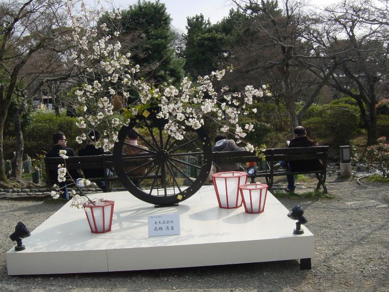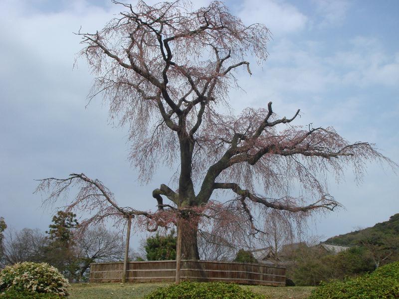桜の名所、シンボルの枝垂桜はまだ、ちらほら咲きでした。 |