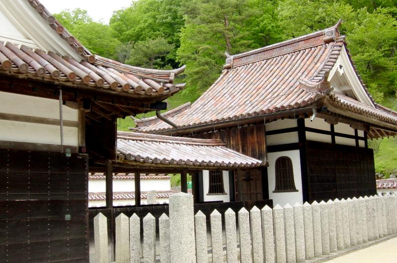 閑谷(しずたに)学校は、寛文10年(1670)に、備前藩主池田光政が庶民教育を目的に開いた学校です。備前焼の瓦が美しい国宝の講堂をはじめ、敷地内の建築物のほとんどが重要文化財です。周囲に 765mに及ぶかまぼこ型の石塀をめぐらしていますが、実に壮観です。学校とはいえまるでお城か寺院のようりっぱな佇まいです。紅葉の季節は櫂の木が紅葉して見事だそうです。