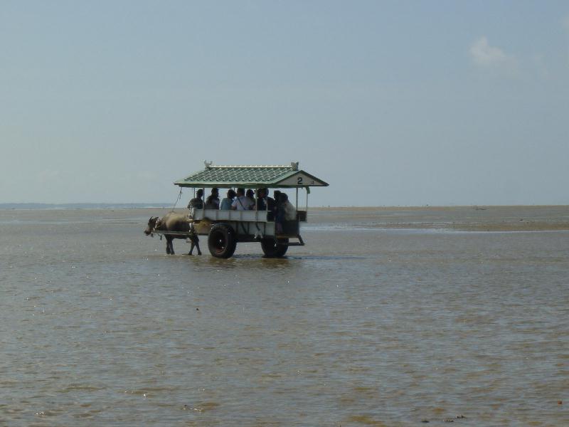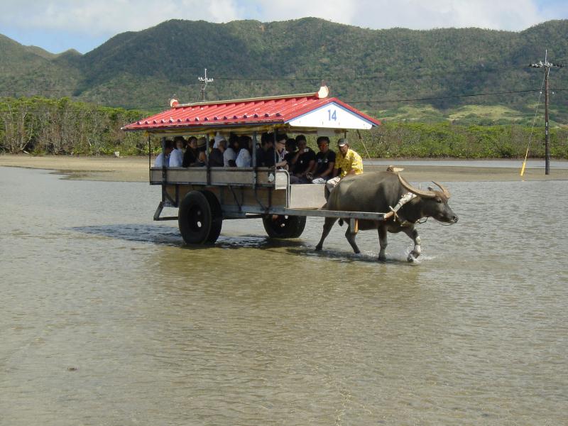 | 西表島の沖合い400mに浮かぶ小さな島。島全体は亜熱帯植物園で、島には水牛車で、、サンシンの音色と共に渡ります。 | ||||
