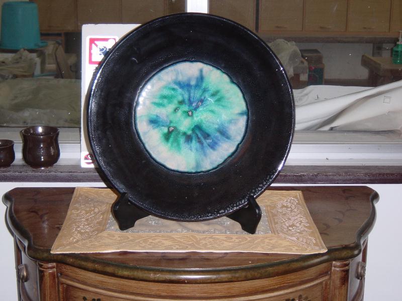 油滴天目と沖縄の海のブルーが特色の焼き物。沖縄の海の色は泥土のミネラルが炎によって、透明のガラスと融合したもの。 |