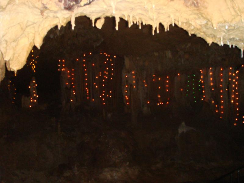 20万年もの歳月をかけて作り上げられた鍾乳洞。その中はイルミテーションが施され、ファンタステック |
