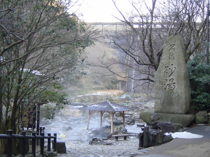 ダムの下にある砂湯は全国露天風呂番付けで西の横綱に選ばれたそうです。川底の砂を吹き上げて湯が湧く様から砂湯あるいは砂噴き湯とも呼ばれる。入りたいけれど、混浴で、入るには勇気が・・・・・