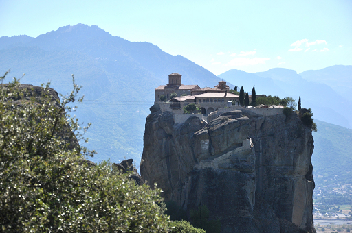 ピンドス山脈の麓、テッサリア平原の奇岩群で、頂上には修道院があります。その数は15〜16世紀の最盛期には24にも数えられましたが、現在は6つの修道院が残っています。下界から生活物資を運ぶ手段は滑車だけという生活をしていました。服装には厳格で、女性はズボンでも見学できません。布を貸して下さるので、腰に巻いて入場しました。