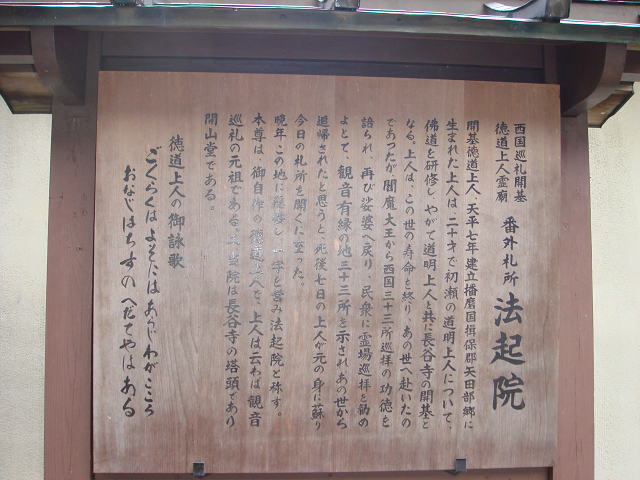 | 西国巡拝開基の徳道上人が晩年過ごされたところで、御霊所でもある。本尊は上人ご自身の像です。 | ||