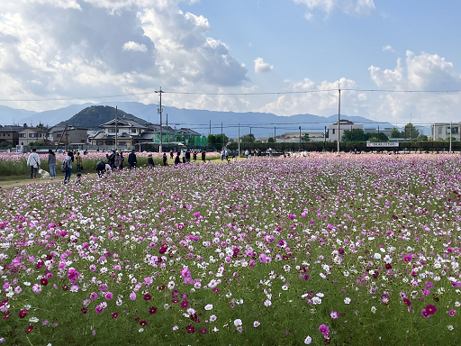 唐の長安を真似て造られた日本最初の本格的な都跡。平城京遷都までの16年間持統、文武、元明の各天皇が政務を行いました。規模は東西5.3q、南北4.8qありました。菜の花やコスモス、キバナコスモス、ハスなど季節ごとに美しい花が植えられています。