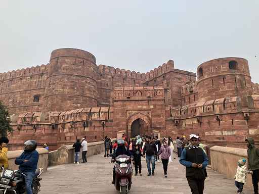 デリーからの遷都に伴い、ムガル帝国第三代皇帝アクバクにより1565年から8年かけて建てられた城塞。堅牢な赤砂岩の城塞は高さ20m、長さ2.5qにわたる。建物内は大理石を多く使い、デザインはイスラムとヒンドゥー洋式を取り入れています。