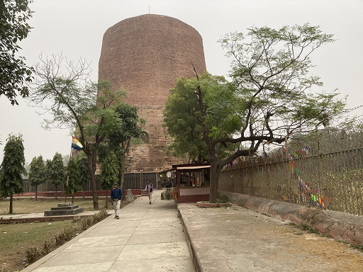 アグラのホテルを7時出発でデリーに向かい、デリーから国内線13:10分発でバラナシを目指しました。飛行時間は約1時間20分。バラナシに着くとまず、仏陀が初めて説法を行ったとされる初転法輪の地サールナイト見学しました。