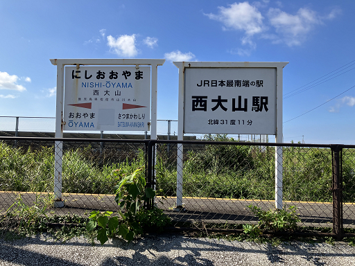 を体験しました。熱い砂を体にかけてもらいます。10分ほどでしたあ、かなり熱いでした。西大山駅はJR最南端の駅です。開聞岳をバックに写真を撮る人が多く、少ない列車の時刻表を確認しました。