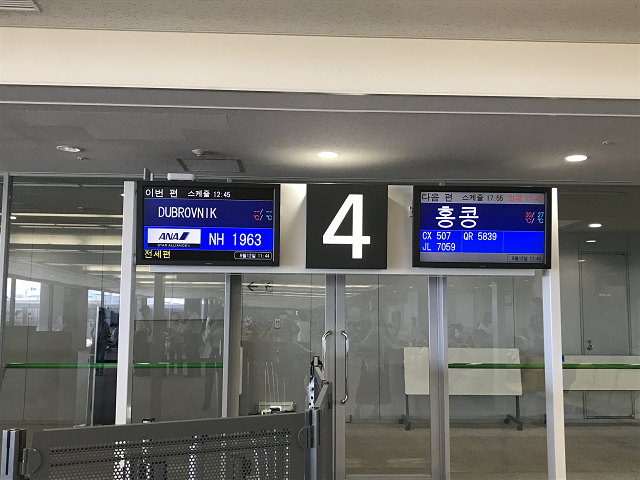 | 関空発12:45のANNのチャーター便でドブロヴニクまで直行です。 普段クロアチアまでは、直行便はなくて、フランクフルトなどを経由してしか行けません。 ドブロヴニクには予定より少々早く、18:08に到着しました。 時差はー8時間ですが、サーマータイムで、実質ー7時間です。 おおよそ、18時間ぐらいかかるところ、12時間で行けるので大変有難いです。 空港の受付コーナーには各旅行社のツワー客が大勢いて、ちょっとびっくりしました。 |