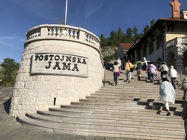 | ヨーロッパ最大、長さ27kmの大きな鍾乳洞を観光しました。トロッコに乗って2kmまで、進みます。まるでテーマパークのアトラクションです。トロッコを下りて、約1.8キロを歩くのですが、探検家のようで、ワクワクして楽しいでした。 鍾乳石が1mm成長するには10年から30年かかるそうで、ここまでのものが出来るのはまさに自然の驚異です。暗黙の世界に生きる、”ホライモリ”という両生類も確認することができました。 |