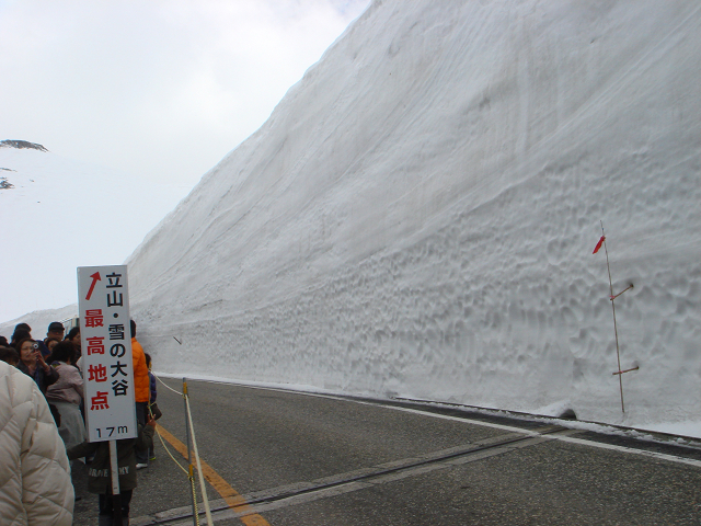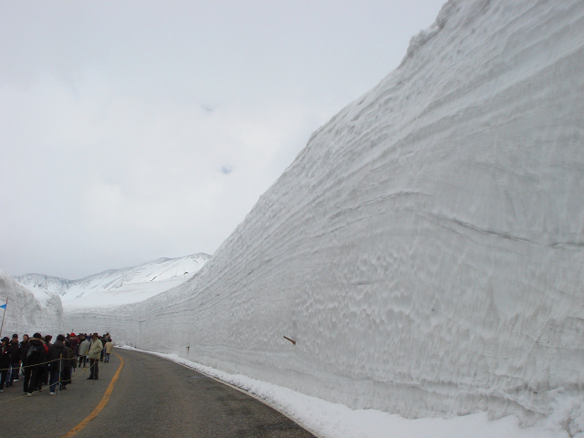 雪の大谷は4月17日から6月10日まで楽しめるそうですが、やはり時期が早いほうが迫力があるでしょう。5日現在、長さ500メートルで高さは最高で17mということでした。