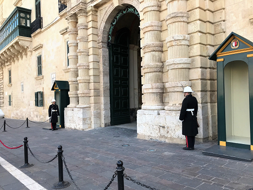 イスラエルから退いた十字軍のヨハネ騎士団がロードス島に移り、ロードス島をオスマントルコ帝国に追われてマルタ島に移り、マルタ騎士団を名乗るようになりました。有名な1565年の大包囲戦では、オスマン帝国側は総勢約4万人、騎士団側はわずか700人でした。マルタ人の市民を加えても、9000人ほど。3ヵ月に及んだ非情な戦いの末、聖ヨハネ騎士団はついに勝利を収めます。以後、名声を高め、各国の寄進を集め、栄えて行きます。1798年には、ナポレオン率いるフランス軍の占領によって、騎士団はマルタ島を追われます。公開されているのは2階のいくつかのお部屋とネプチューンの中庭を囲む廊下のみですが、素晴らしい装飾で栄華がしのばれます。 |