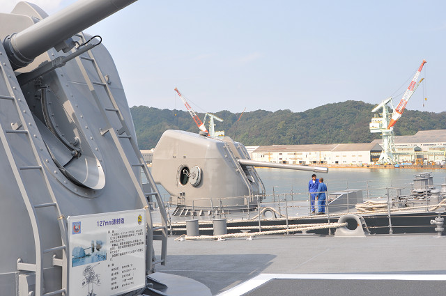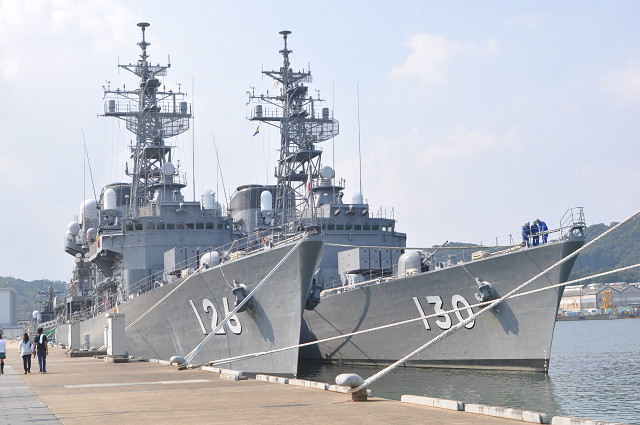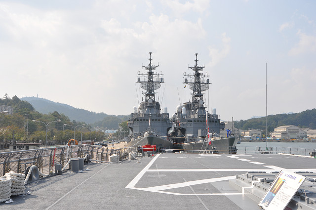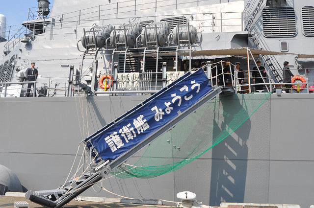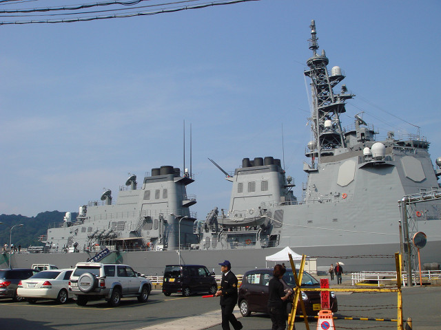 | 海上自衛隊の艦船の公開していましたので、見学してきました。あまりの大きさに、びっくりしました。 ”護衛艦みょうこう”の船内も詳しく説明していただきました。防衛の為のミサイル装置や魚雷発射管等整備されたものです。 |