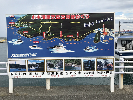 小木海岸は佐渡の南西部にあり、断崖絶壁と奇岩からなる景勝地で名勝に指定されている。20分コースで乗船